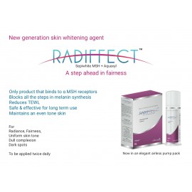 Benefits of Radiffect Cream: Whitens the skin texture Keeps the skin hydrated, soft and supple Moisturises the skin with Radiance Reduces roughness and damage against sun rays Non-greasy Non-comedogen..